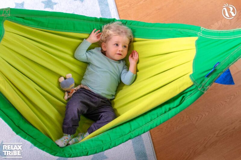 ![Moki Froggy: Kids Hammock [100%Organic Cotton] w/ Suspension [max.80kg/TÜV certified] - Image 5](https://relaxtribe.com/wp-content/uploads/moki-froggy-kids-hammock-pure-organic-cotton-with-suspension-max-80kg-lime-green-childrens-bedroom-500x500.jpg)